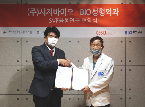 재생의료 전문기업 ㈜시지바이오(대표이사 유현승)가 비아이오(BIO) 성형외과의원(대표원장 조인창)과 SVF(Stromal Vascular Fraction, 기저혈관분획) 공동연구를 위한 업무협약(MOU)을 체결하고 조직 재생 분야에서 SVF 이식의 치료 효과 입증을 위한 연구에 돌입한다고 12일 밝혔다.