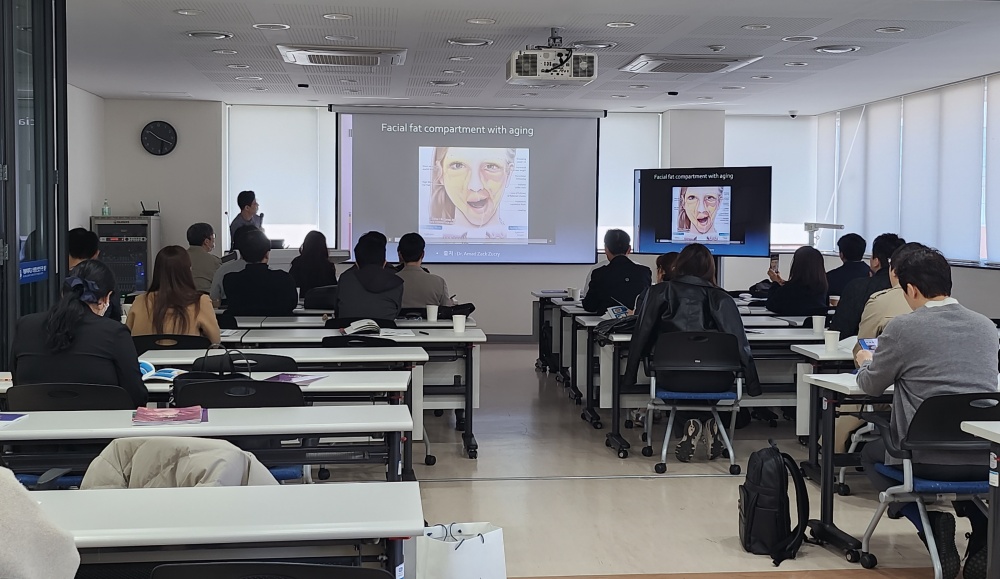 행사에서는 한승호 교수(이대서울병원 첨단의생명연구원장/이화여대의료원 휴먼정보응용사업단)가 ‘에스테틱 시술을 위한 레이어드 삽화가 포함된 얼굴의 필수 해부학(Essential Anatomy of the Face with Layered illustrations for Aesthetic Procedures)’을 주제로 강의를 진행했다.