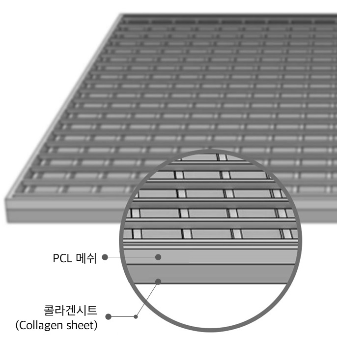 티슈덤은 구조적 우수성을 기반으로 차별화된 솔루션을 제공해 환자와 의료진의 만족도를 높일 것으로 기대된다. 티슈덤의 구조는 생분해성 고분자 소재인 PCL(Polycarprolactone) 메쉬층과 콜라겐(Collagen) 시트가 결합된 조직 구조로 제작됐다.
