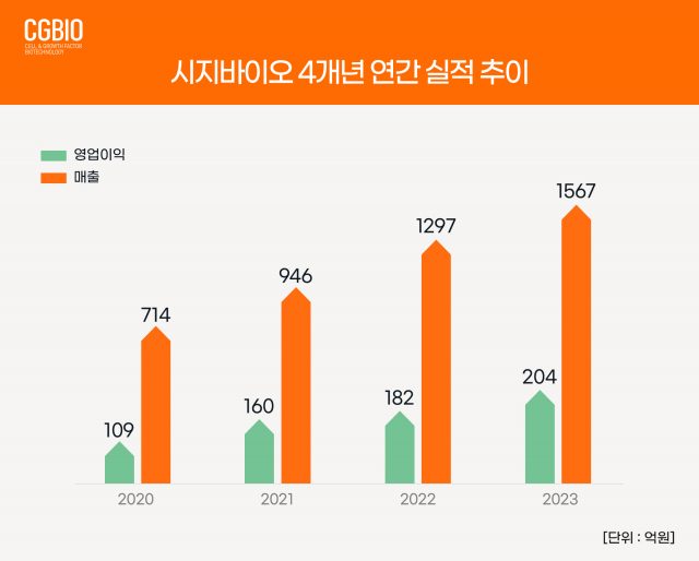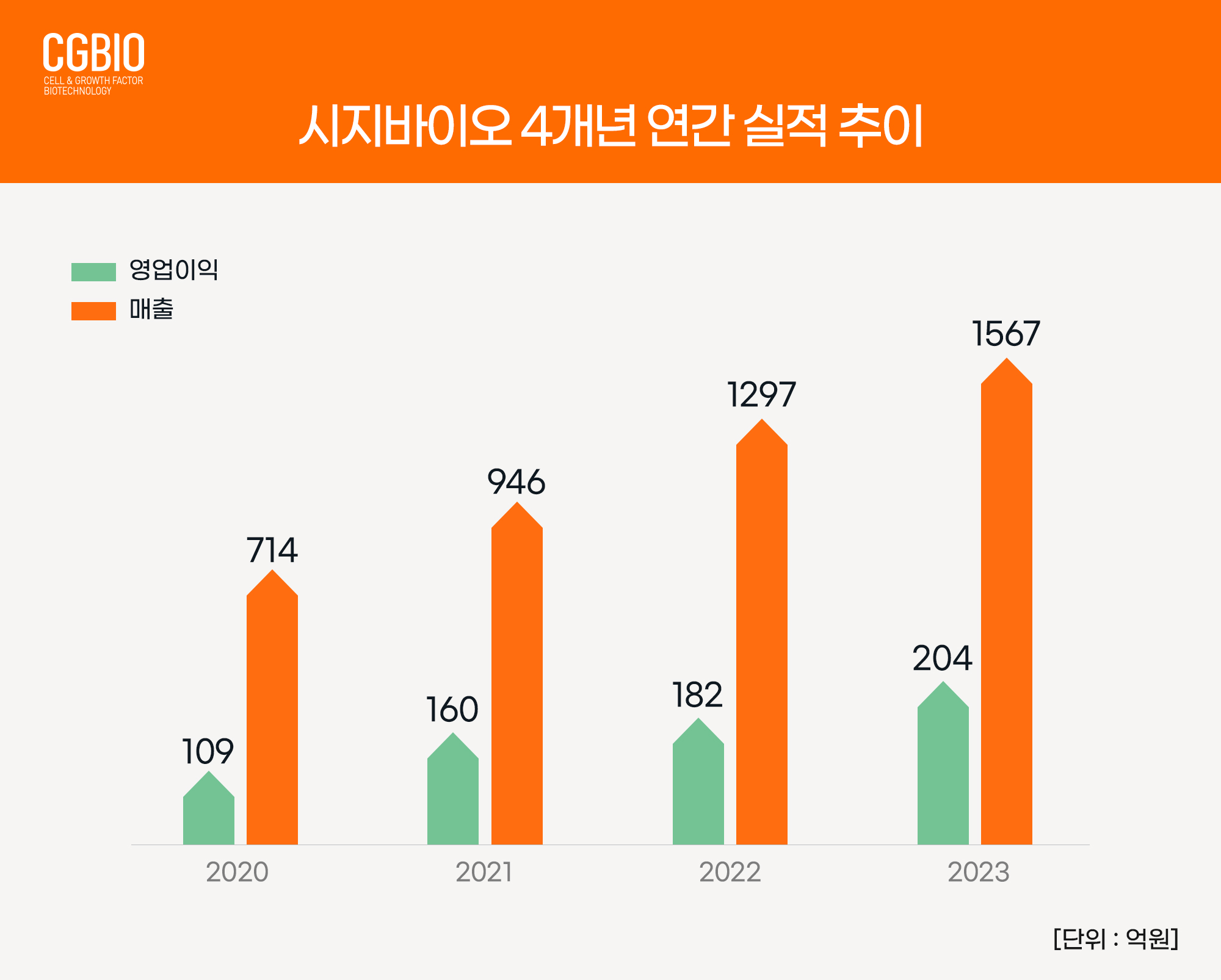 바이오 재생의료 전문기업 시지바이오(대표이사 유현승)가 2023년 연결 기준 매출액 1,567억 원, 영업이익 204억 원을 달성하며 역대 최고 매출을 경신했다고 22일 밝혔다. 전년 대비 매출액은 20.8%, 영업이익은 12% 증가한 실적임과 동시에 3년 만에 매출과 영업이익이 약 2배 성장하는 쾌거를 달성했다.
