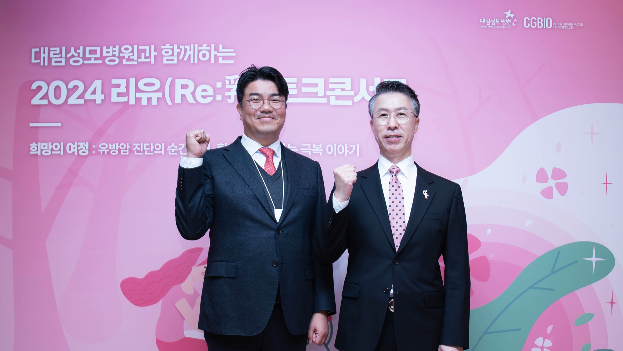 바이오 재생의료 전문기업 시지바이오(대표이사 유현승)와 대림성모병원(이사장 김성원, 병원장 홍준석)이 지난 6일 대웅제약 베어홀에서 유방암 환우를 위한 ‘2024 리유(Re:乳) 토크콘서트’를 성황리에 개최했다고 12일 밝혔다. 행사에는 유방암 환우와 유방암에 관심 있는 일반인 약 200명이 참석했다.