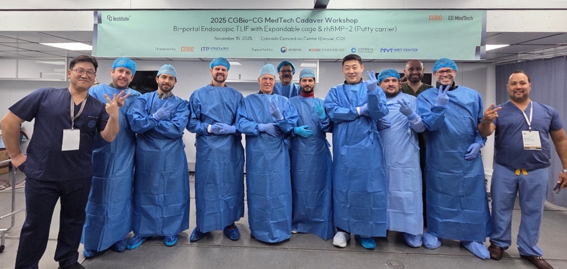 시지바이오는 올해 학회에서 글로벌 교육 프로그램 또한 진행하였는데, 시지바이오의 자사 교육 조직 ‘시지 인스티튜트(CG Institute)’가 운영한 수술 실습 교육 프로그램(2025 CGBIO–CG MedTech Cadaver Workshop)에서는 고용산 경북대학교병원 신경외과 교수와 박섭리 용인세브란스병원 정형외과 교수가 양방향 내시경 기반 척추유합술(Bi-portal Endoscopic TLIF with Expandable Cage & rhBMP-2 Putty carrier)을 시연했다. 중남미·인도·레바논 등 다양한 국가의 척추 전문의들이 참여해 한국의 최소침습 척추 수술 기술에 높은 관심을 보였다.