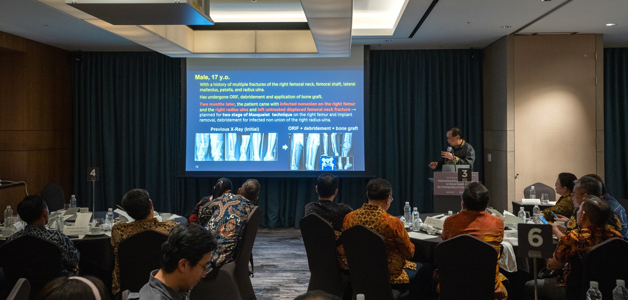 The symposium was chaired by Professor Ismail Hadisoebroto Dilogo of Cipto Mangunkusumo Hospital, Jakarta, with presentations on the application of NOVOSIS in trauma and joint reconstruction, periprosthetic fractures, and hip avascular necrosis.