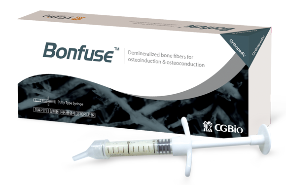 Bonfuse는 탈회된 골기질(DBM:Demineralized Bone Matrix)에 합성 수산화아파타이트 다공성 그래뉼(HA, hydroxyapatite)을 더한것으로 동물에서의 골유도 능력과 골전도 능력을 모두 갖추고 있습니다.